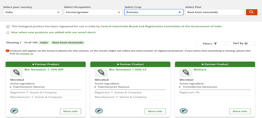 - With real-time access to a searchable, localized database of bioprotection solutions, users can make informed decisions tailored to their crops, regions, and pest challenges—all supported by scientific data and regulatory approval statuses.